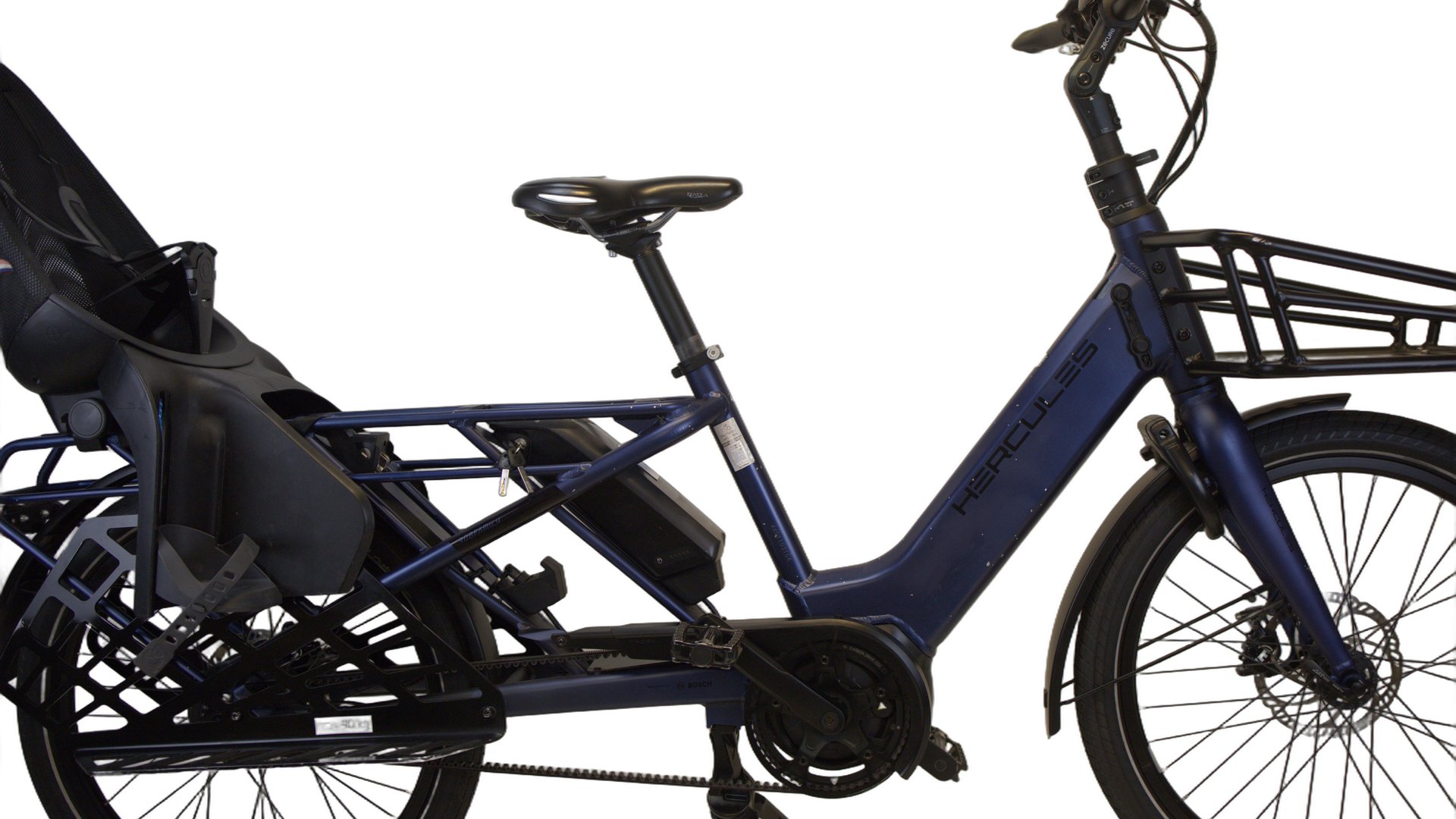 Spesielt i byene er elsykkel i ferd med å bli en av de mest praktiske måtene å komme seg rundt. Denne lastesykkelen fra Hercules er først og fremst bygget for å være kraftig og praktisk. Siden den er solid nok til å kunne lastes med totalt 200 kilogram inkludert syklister er Rob Family en veldig stabil og solid sykkel med stor kapasitet, langt bagasjebrett, beltedrift og enviolo-girvrider. Hercules er en sykkel som umiddelbart gir en god følelse når du sykler den første gang. Den er veldig enkel å sykle, og oppleves på mange måter som en vanlig elsykkel. Den er stabil og stødig, lett å svinge og med god respons på styret. Den er også lett å stoppe og å tråkke i gang igjen fra bakke og i lyskryss. I tillegg sitter du behagelig, med godt sete og en oppreist sittestilling. en longtail med plass til inntil 2 barn godt med justeringsmuligheter, slik at den fint kan tilpasses syklister mellom 165 og 190cm lastesykkelen med reimdrift og trinnløst gir kraftige 4 stemplede bremser fra Magura 500Wh batteri fra Bosch god plass til 2 barneseter hele 200 kg total lasteevne. Sykkelen selges på vegne av utleieselskapet Whee. Sykkelen har gjennomgått inntakskontroll hos Sportienda i forbindelse med salget. Sykkelen leveres med barnesete, kurv og fothviler bak, samt vinterdekk (ikke montert)