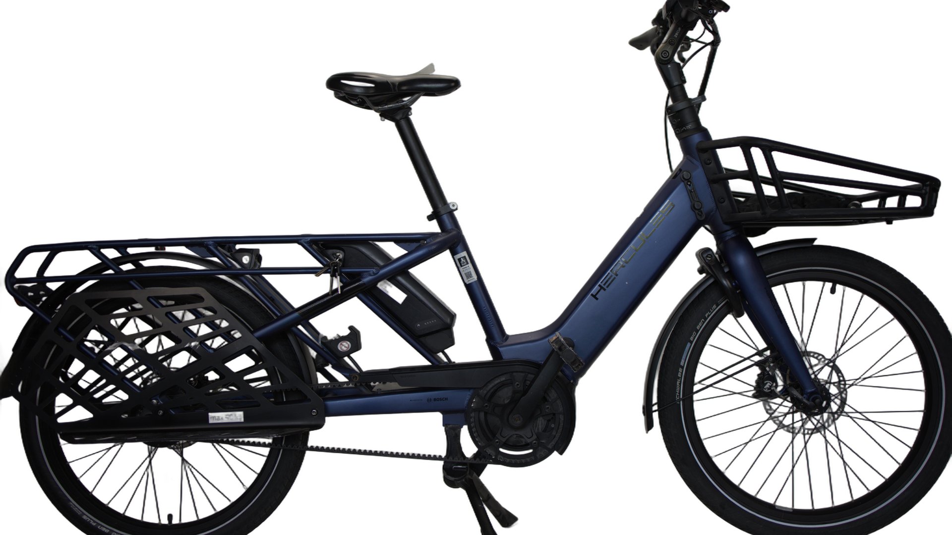 Spesielt i byene er elsykkel i ferd med å bli en av de mest praktiske måtene å komme seg rundt. Denne lastesykkelen fra Hercules er først og fremst bygget for å være kraftig og praktisk. Siden den er solid nok til å kunne lastes med totalt 200 kilogram inkludert syklister er Rob Family en veldig stabil og solid sykkel med stor kapasitet, langt bagasjebrett, beltedrift og enviolo-girvrider. Hercules er en sykkel som umiddelbart gir en god følelse når du sykler den første gang. Den er veldig enkel å sykle, og oppleves på mange måter som en vanlig elsykkel. Den er stabil og stødig, lett å svinge og med god respons på styret. Den er også lett å stoppe og å tråkke i gang igjen fra bakke og i lyskryss. I tillegg sitter du behagelig, med godt sete og en oppreist sittestilling. en longtail med plass til inntil 2 barn godt med justeringsmuligheter, slik at den fint kan tilpasses syklister mellom 165 og 190cm lastesykkelen med reimdrift og trinnløst gir kraftige 4 stemplede bremser fra Magura 500Wh batteri fra Bosch god plass til 2 barneseter hele 200 kg total lasteevne Det kan kjøpes ekstra batteri for et tillegg i prisen. Det er mulig å kjøpe ulike typer barneseter som vist på bildet som tilvalg. Disse koster kr 700,- pr stk.