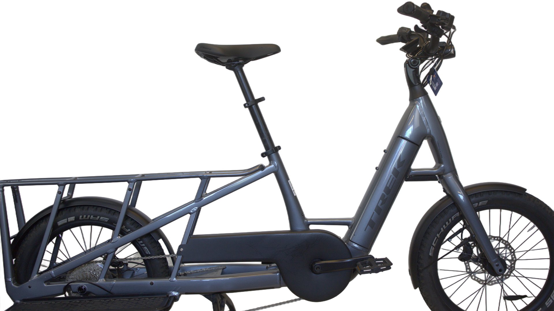 Opplev bekvemmeligheten med Trek Fetch+ 2, en allsidig elektrisk bysykkel designet for urban pendling og hverdagslige ærender. Denne unisex-sykkelen blander funksjonalitet med moderne stil, med sitt lave innsteg og en integrert og avtakbar Bosch PowerTube 500Wh-batteri som gir deg kraften du trenger for å komme deg lenger uten anstrengelse. Den kraftige Bosch Performance Line Cargo-motoren med 85 Nm dreiemoment gir sømløs assistanse, perfekt for å navigere gjennom byen. Utstyrt med Shimano Deore 10-trinns girsystem, kan du enkelt tilpasse syklingen til forskjellige terreng, mens de hydrauliske skivebremsene sørger for pålitelig stoppkraft under alle forhold. Schwalbe Pick-Up-dekkene sikrer stabilitet og god veigrep, uansett vær. For ekstra funksjonalitet har sykkelen et integrert lasterom og innovative lys fra Spanninga og Herrmans, noe som øker sikkerheten din på veien. Trek Fetch+ 2 er dominerende innen urban pendling, og gir en komfortabel, pålitelig og miljøvennlig måte å forflytte seg på i urbane områder.