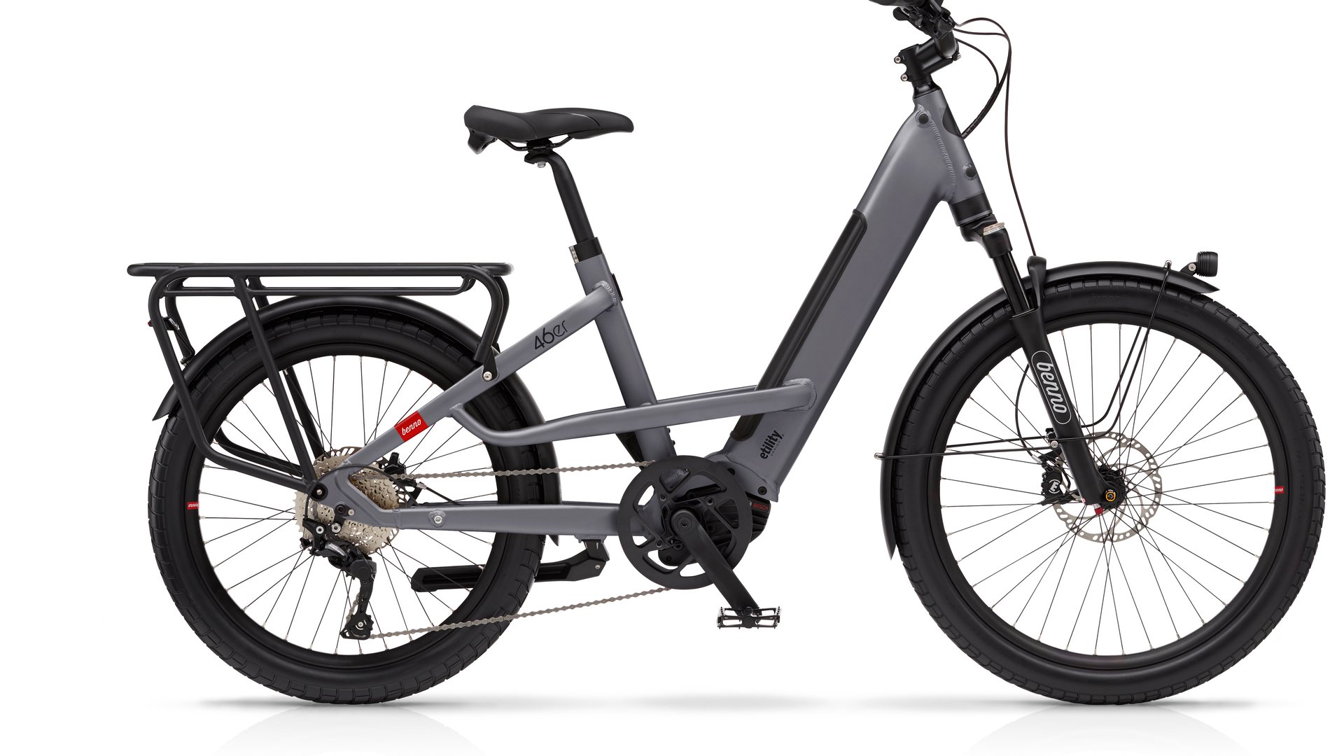 Benno 46er – Kraft, komfort og kapasitet i én elsykkel! Oppdag Benno 46er, en revolusjonerende elsykkel som kombinerer fleksibiliteten til en standard sykkel med lastekapasiteten til en cargo-sykkel. Enten du pendler med barn, handler eller transporterer utstyr, er dette sykkelen som gir deg en effektiv, stabil og komfortabel kjøreopplevelse. Kraftig Bosch-motor: Performance CX Gen4 med 85Nm dreiemoment gir deg suveren ytelse, selv i bratte bakker. Unik hjulkombinasjon: 26” foran for komfort og kontroll, 24” bak for lavt tyngdepunkt og stabilitet. Komfortabel demping: Suntour SF18 MOBIE 25 dempegaffel med 75mm vandring gir en komfortabel og behagelig tur. Lang rekkevidde: 500Wh batteri gir opptil 80 km, med mulighet for ekstra batteri for enda lenger rekkevidde. Etility®-design: Maksimal nytteverdi og slitestyrke – perfekt for både familie og jobb. Med Benno 46er får du den perfekte balansen mellom størrelse, styrke og smidighet – en elsykkel som ser ut og føles som en vanlig sykkel, men med kapasiteten til en lastesykkel.