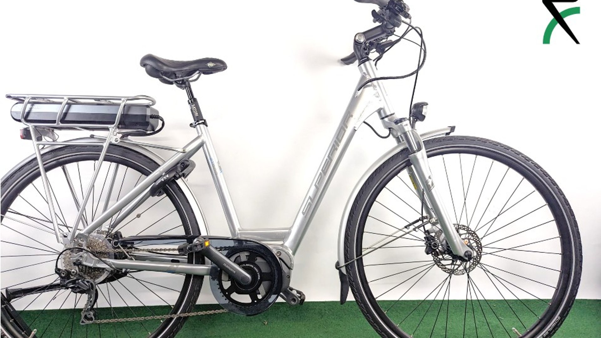 Klassisk elsykkel med lavt innsteg og Shimano motor.