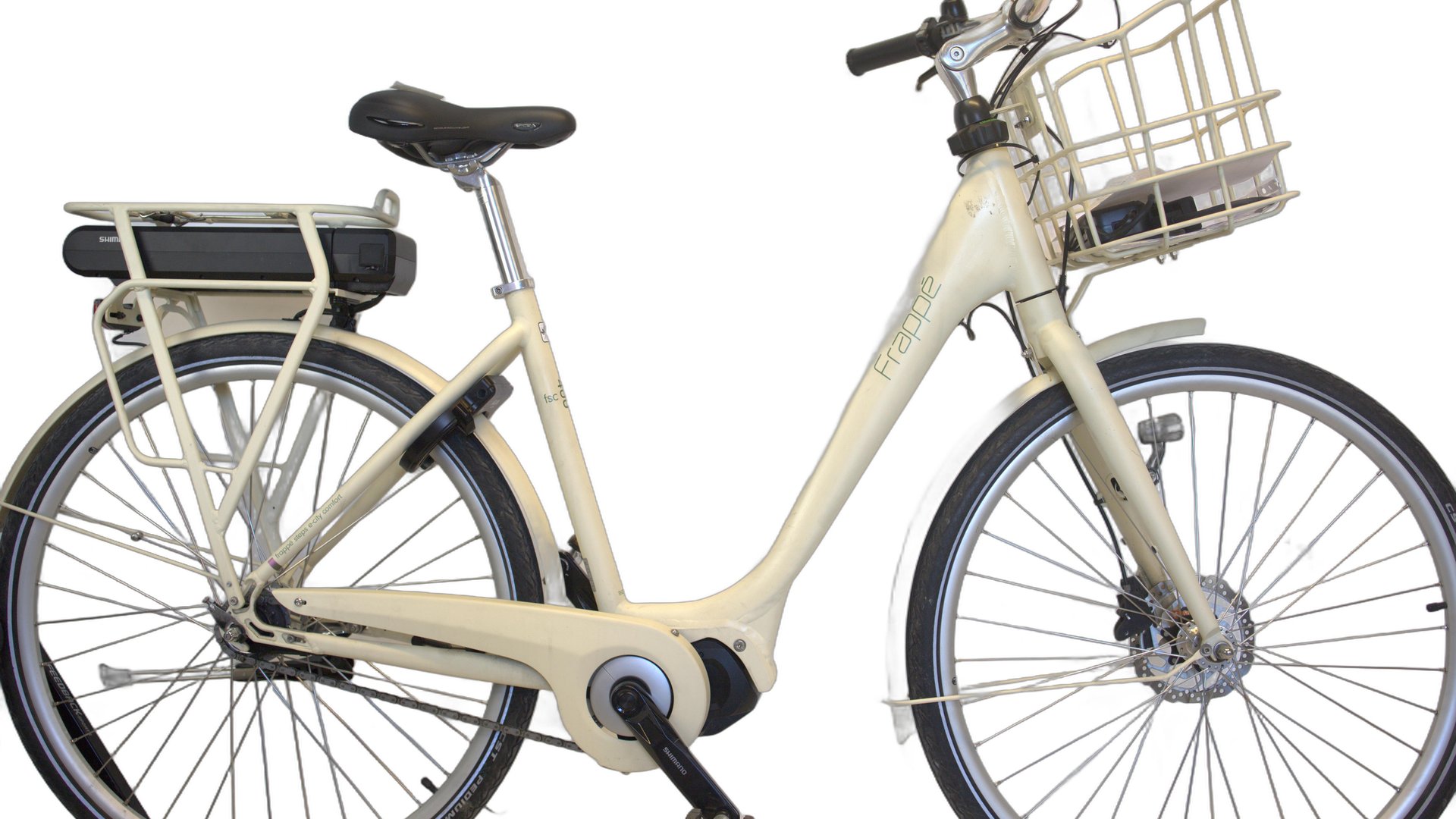 Klassisk bysykkel fra Frappe i moderne utgave. Shimano Nexus 7-girs innvendig drivverk og Shimano Steps 5000 elsystem sørger for effektiv kraft til bratte bygater. Den lave rammen gjør det enkelt å stige på og av sykkelen, mens rammegeometrien gir en komfortabel og oppreist sittestilling som gir deg et godt overblikk i travel bytrafikk. Justerbart styre hjelper deg å finne beste tilpasning av styrehøyden. Leveres med kraftig hydraulisk skivebrems fra Shimano for stoppekraft uansett vær. AXA lås og lykter framme og bak gjør sykkelen til en perfekt partner for de gode sykkelturene.