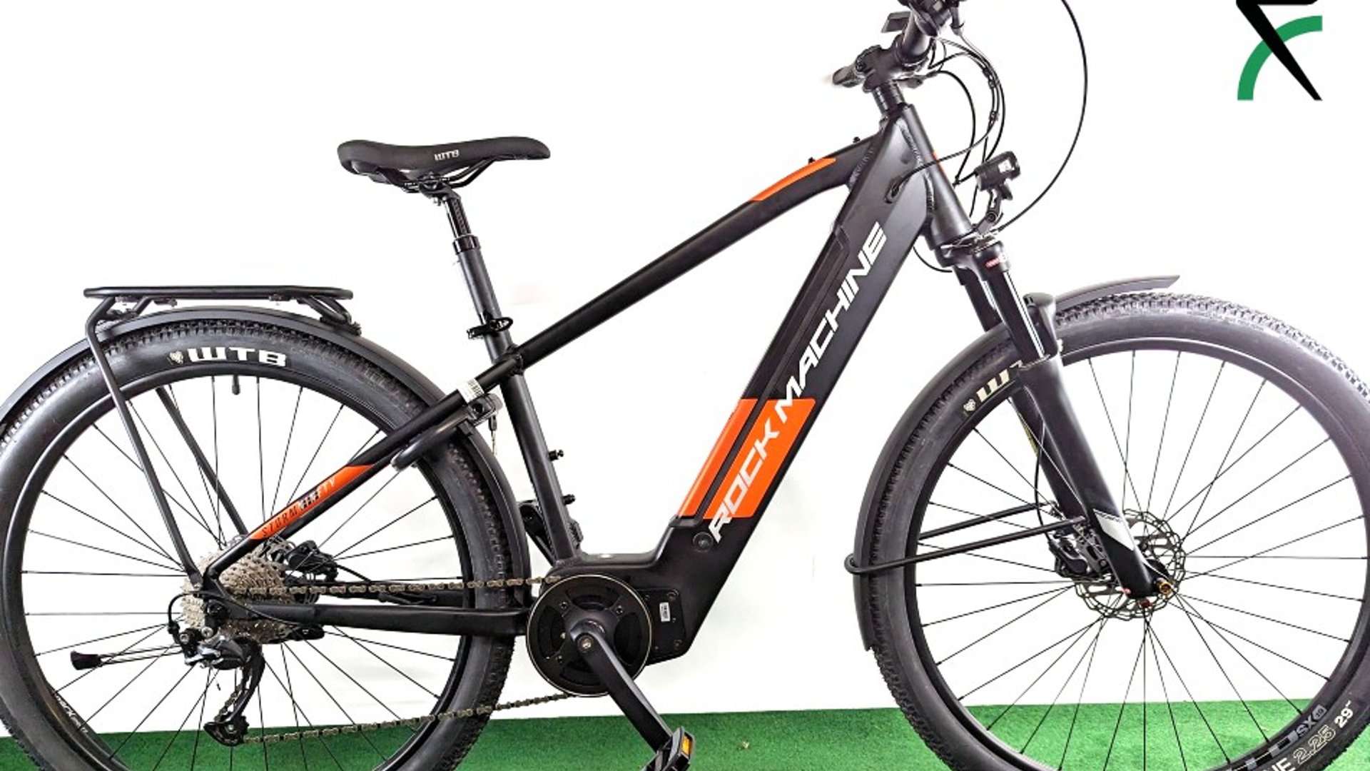Rock Machine Storm INT e90-29 Touring har en kraftig 90 Nm Sport Drive-motor og integrert batteri på hele 500 Wh som lar deg sykle opptil 100 km med assistanse. Sykkelen har geometri som gir deg en behagelig sittestilling både i byen og i terrenget. Med dempegaffel og kraftige dekk er sykkelen klar for brostein, fortauskanter og stier. Storm INT kommer ferdig utstyrt med skjermer, bagasjebrett, lykter og lås. Elsykkelen kommer med motor og batteripakke fra merket Sport Drive. Den er med sine 90 Nm veldig sterk og kan dra tungt uten at man føler at det går sakte. Batteriet gir opp mot 100 km rekkevidde*. Batteriet kan lades mens det er på sykkelen, eller det kan taes av hvis man vil lade batteriet en annen plass en hvor sykkelen står. Et deksel vippes til side så kan man enkelt ta ut batteriet fra underrøret. Girsystem Ellers er denne elsykkelen utstyrt med Shimano Altus girsystem, med ni gir. Disse skifter man mellom med høyre hånd. Med venstre hånd har man displayet der man kan velge de forskjellige elsykkelmodusene. Sport Drive motoren har fire ulike modus. Modusen som gir mest kraft bruker også mest batteri, og omvendt. Disse fire moduser kan enkelt velges mellom, selv i fart, ved å trykke på knappene på displayet på venstre side av styret. Bremser Elsykkelen har hydrauliske skivebremser. Det gir særdeles god og kontrollert stoppekraft når du trenger det, uansett om det er vått eller tørt ute. Forbrems er på venstre side og bakbrems er på høyre side. Det er ikke pedalbrems, så man kan ikke bremse med å "tråkke bakover". Utstyrspakke Utover dette har denne sykkelen full utstyrspakke, med lys foran og bak som betjenes med en egen knapp på displayet. Dempegaffel for godt grep og topp komfort. Bagasjebrett, rammelås (bruker samme nøkler som batteriet), skjermsett, pedaler og støtte. Bagasjet er av typen AVS, Atran Velo System. Det betyr at alle sykkelvesker, sykkelbager eller sykkelkurver fra merket Atran Velo enkelt kan klikkes på bagasjebrettet slik at det sitter fast.