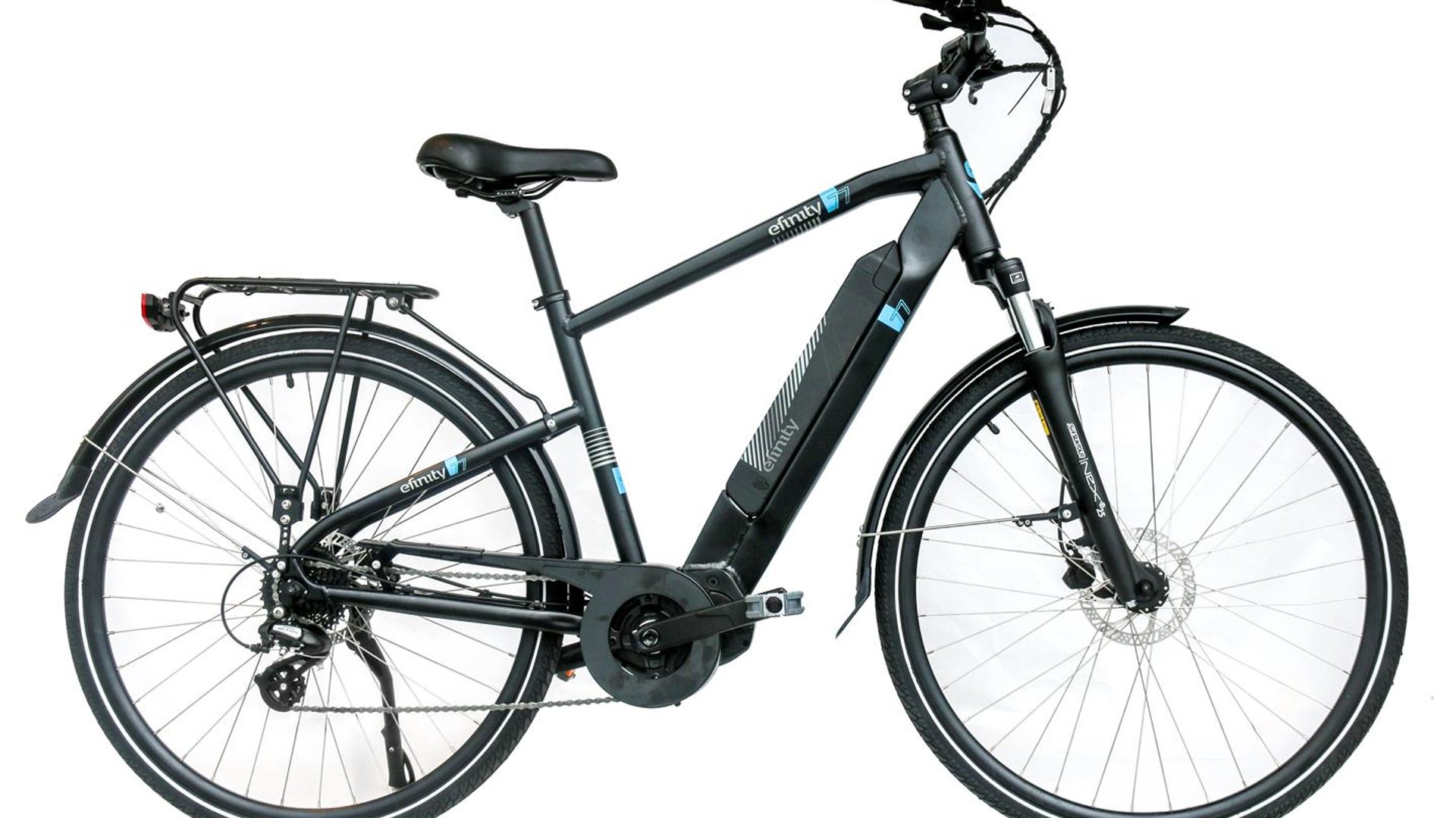 Efinity elsykler er en rekke med norskutviklede elsykler for by, tur og jobbsykling til en rimelig pris. Syklene er utstyrt med effektive hydrauliske skivebremser, dempegaffel, Shimano girsystem og en meget kraftig motor fra verdens største motorleverandør Bafang. Alt for å gi en god, trygg, effektiv og driftssikker sykkelopplevelse. E77-modelle kjennetegnes av en oppreist og komfortabel sittestilling og en god vektfordeling som gir sykkelen god balanse. Leveres med Bafang M420 på hele 80nm og et oppgradert batteri på 504wh som gir meget god rekkevidde og godt med ressurser i alle sammenhenger. Alle Efinity e77 leveres med støtte, bagasjebærer, skjermer og lettlest display.