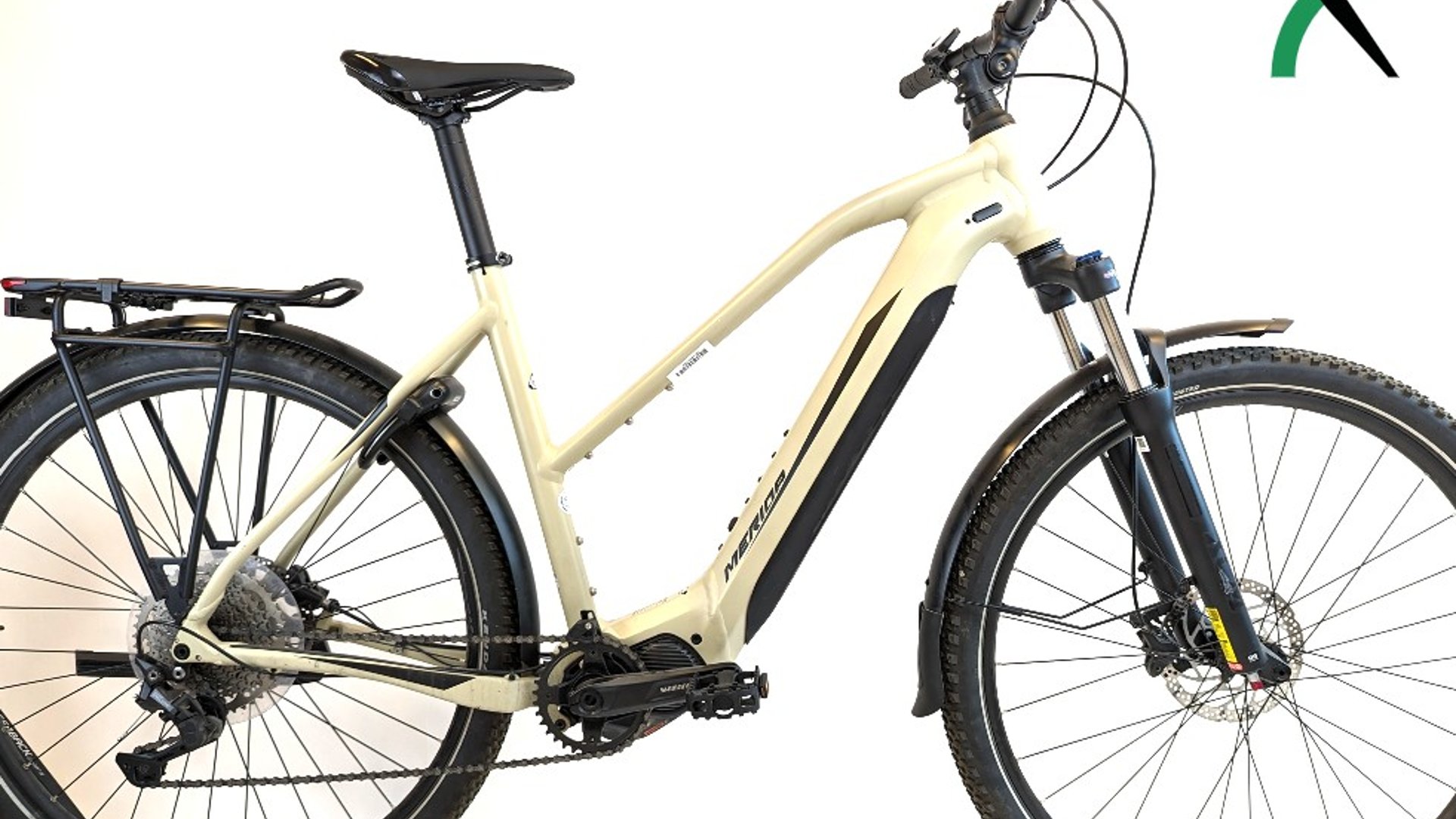 Lavt innsteg blandet med tryggheten fra en mtb. Sammen med Shimano EP8-motor (85nm), 630Wh batteri og brede dekk er eBig.TOUR 400 EQ klar for alt! eBig Tour kommer med en nyutviklet ramme, som i samarbeid med Shimano, har integrert batteripakken på en veldig enkelt og linjeren måte. Rammen er klassifisert som en terrengsykkelramme, med større dimensjoner (BOOST) og plass til større dekk, mer solid dempegaffel og mer holdbare hjul. Alt i alt en sykkel som tåler daglig bruk, om det er på asfalt eller på tur i marka! En av hovedfordelene med Shimano sitt EP8 elsystem, er at de har blant markedets minste motorenhet. Dette gir en supertight og leken sykkel, som er perfekt for norske forhold. Responstiden på motorkraften er også ekstremt rask og du har tilgjengelig nesten all motorkraft med en gang du starter tråkket. Noe som rett og slett gir en elsykkel, uten at det føles som en elsykkel! Sykkelen leveres med Shimano Deore 1×11 girsystem, hydrauliske skivebremser og en solig dempegaffel. Videre er det et holdbar hjulsett fra Merida med Kenda Booster 2.2 dekk, med godt grep til å kommes seg trygt til Kikut og hjem, og lav nok rullemotstand til å cruise til og fra jobb. eBig tour 400 kommer med helintegrerte skjermer, og bagasjebrett, med lys integrert og koblet direkte til batteriet. Allsidig og kompromissløs elsykkel, som passer like godt til og fra jobb som lange sykkelturer i marka.