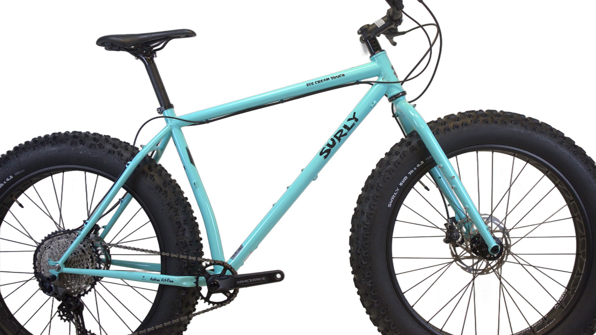 Denne Surly Ice Cream Truck er en solid fatbike med stålramme og brede 26-tommers hjul, designet for allsidig terrengsykling. Den har et pålitelig Shimano SLX 12-girs-system som gir deg god kontroll og mulighet for variert bruk. Rammen og gaffelen i kromoly-stål gir holdbarhet og komfort, mens de 4,8 tommer brede dekkene gjør den velegnet for krevende underlag som snø, sand og gjørme. Hydrauliske skivebremser sørger for trygg og sikker bremsing under ulike forhold. Dette er en sykkel for deg som ønsker en robust og stabil fatbike med klassisk stålbygging, som takler utfordrende terreng uten fjæring, men med god grep og kontroll. **Passer godt for deg som vil ha en solid og allsidig fatbike til krevende underlag, med pålitelig girsystem og god bremsekraft.**
